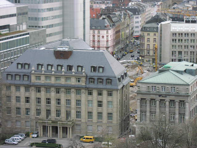 Auf dem Grundstück befand sich die Holzmann Zentrale [Villa Philipp Holzmann] und das Holzmann Hochhaus